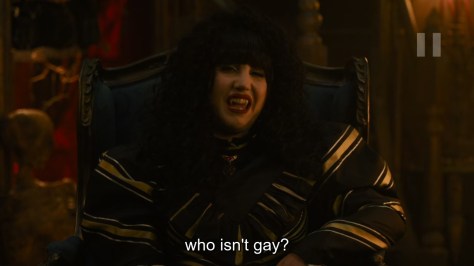 While thinking of how to construct this piece, I was stuck on how best to convey that yes, all these characters are really, really queer, and their queer arcs are written into the story as normally as their vampire arcs are- there isn’t ever a moment (save for the coming out scene of course) where the characters pause to think about what the implications for their sexualities are. They get as taken for granted as them being vampires, or comedic geniuses. Without a doubt, this was perhaps my biggest takeaway from the particular queer portrayals in What We Do in the Shadows.