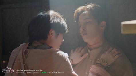 Phupha and his body guard Wayu are attacked by a masked man; leading him to seek Tai and Kram who warned him someone was trying to kill him, while Tai and Kram go to see alternative Kram’s mother who was blinded by Tai’s father in this world. They make her believe Kram isn’t Kram and it’s working really well. Till Kram’s friend appears and Kram tries to get her to recognize him (why? Yaoi that’s why). The episode does focus on Tai and his clearly growing feelings for Kram who seems to be feeling the sway as well.
