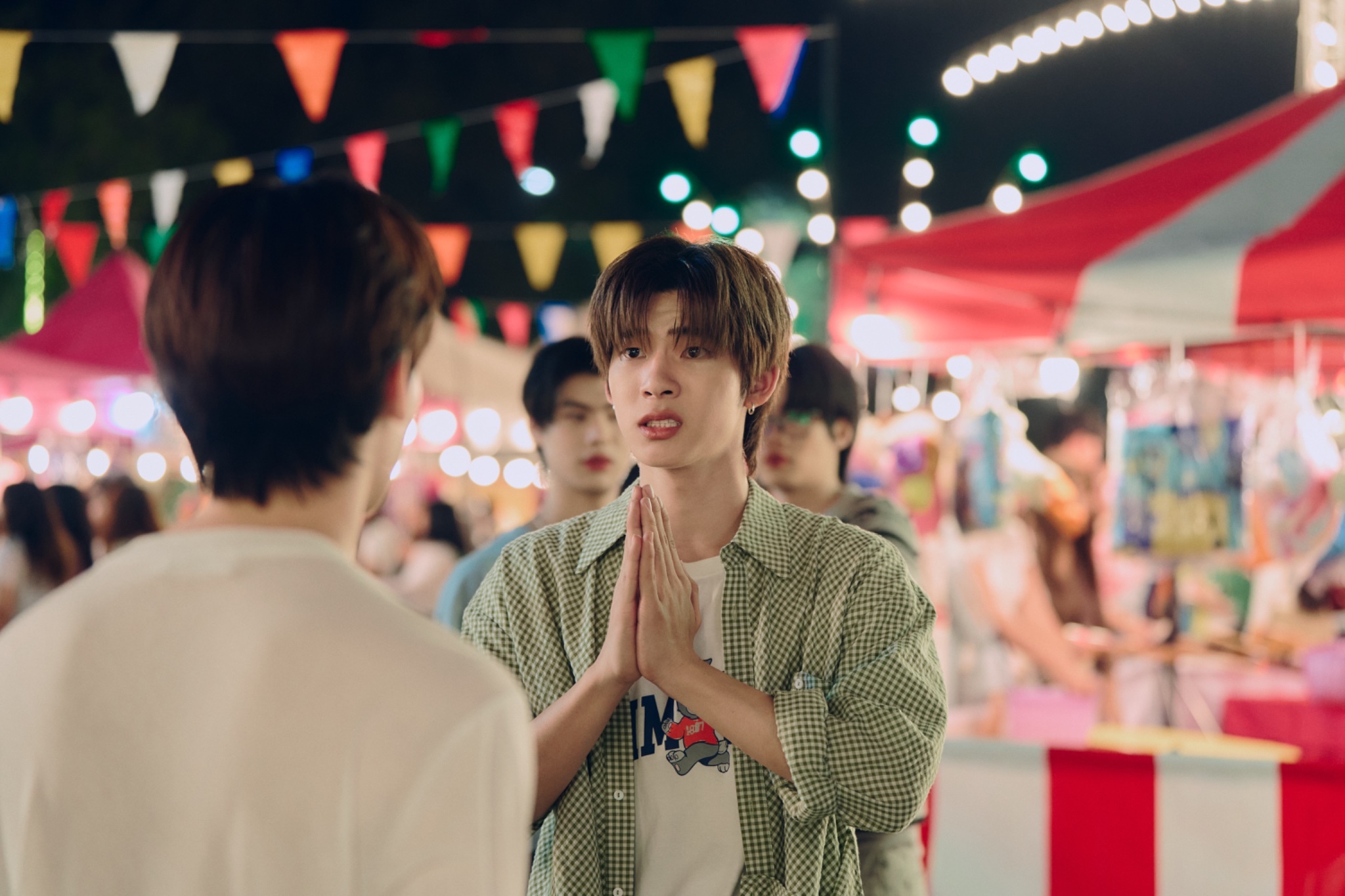 The story begins when, one fine night, Duang (TeeTee Wanpichit) comes across Qin (Por Suppakarn), a popular but icy student from the Faculty of Music at the freshman’s orientation party. A popular decorative arts student, Duang is rather impulsive and hyperactive. For him, it’s love at first sight as he watches Qin serenade the audience with his golden vocals. He immediately decides that Qin will be the “Love of his Life”. It doesn’t matter if Qin agrees or not; Duang decides he will win over Qin despite the circumstances. He stalks Qin with a precision that would put most detectives to shame. Until the day, he declares his affections openly in front of Qin, who challenges him to try his luck. Thus, begins the cat and mouse chase whereby Duang tries some very questionable yet incredibly funny tricks to win over Qin. Por and TeeTee excel in their portrayals, rather it is a joy to watch them in this role reversal. As opposed to their roles in “Your Sky”, where TeeTee had to play a quiet character, here he is required to embody a rather comical personality. TeeTee imbibes Duang with a refreshing authenticity that is adorable and also insane. Por has to play a character with a poker face, which means he needs to have a tight control over his expressions. It is difficult to get a read on Qin’s emotions, especially when Duang is acting bat shit crazy; I have no idea how Por manages to keep a straight face despite everything. They have interesting chemistry, to say the least!