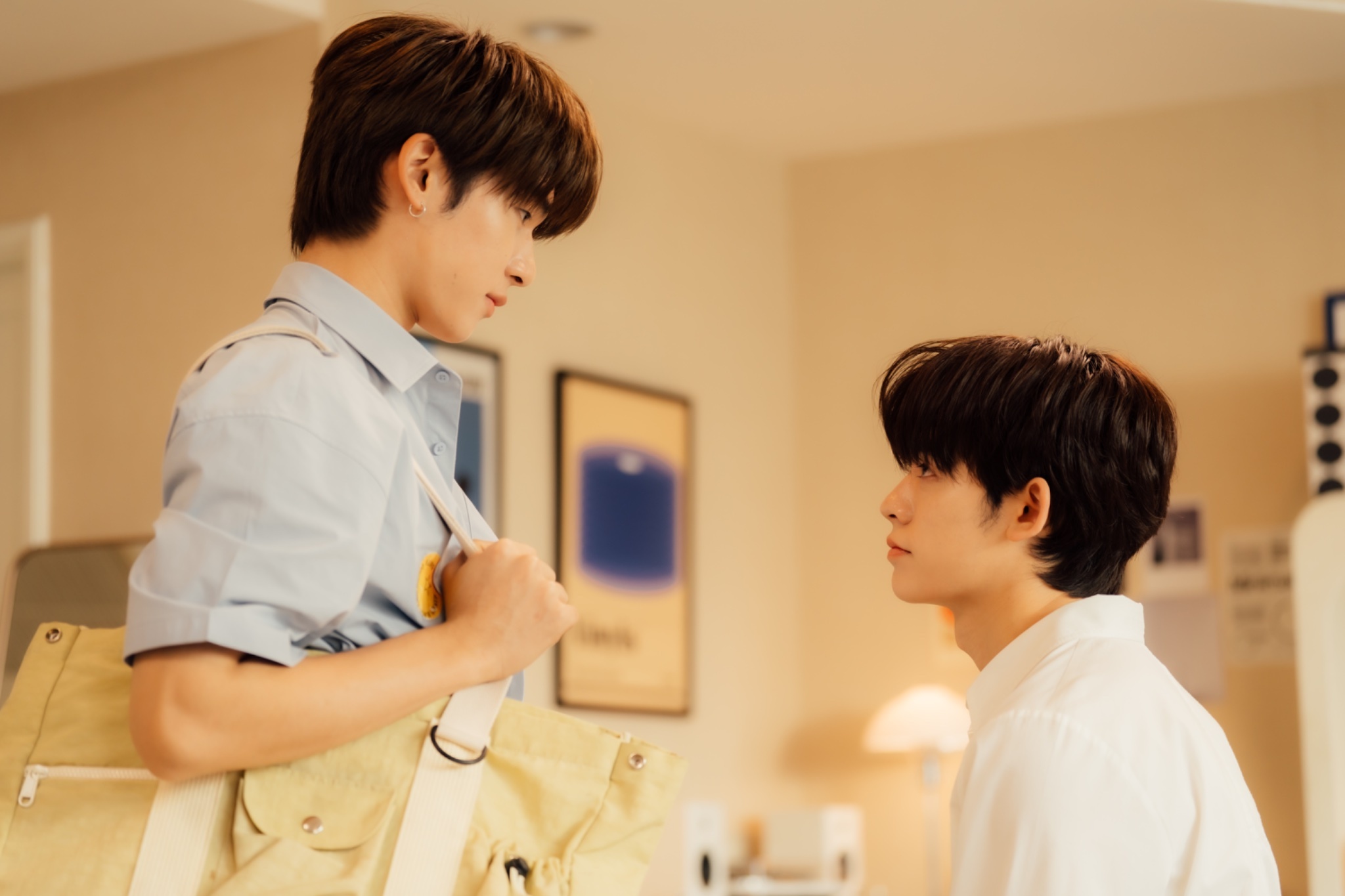 It’s love at first sight for Duang (TeeTee Wanpichit) when he comes across Qin (Por Suppakarn), a popular but icy student from the Faculty of Music at the freshman’s orientation party. Overtly optimistic, impulsive yet insanely positive, Duang decides then and there, that Qin would be the love of his life. Easier said than done, because despite his handsome looks, Qin is reserved, lofty and somewhat arrogant. Apart from his close circle of friends, he doesn’t interact with anyone else much. Thus, begins the stalking, the valid “cat and mouse” game to win over Qin’s hearts. It’s the subtle moments that win over Qin ultimately as he slowly caves in to the golden retriever who loves him, despite that. Qin has major trauma from a childhood incident where he was abused by his caretaker. He resolutely believes that his parents don’t care much about him. As Duang & Qin grow closer, Duang helps them bridge the distance and become a whole family again. Add Duang’s chaotic family to this mix and we have a potboiler.